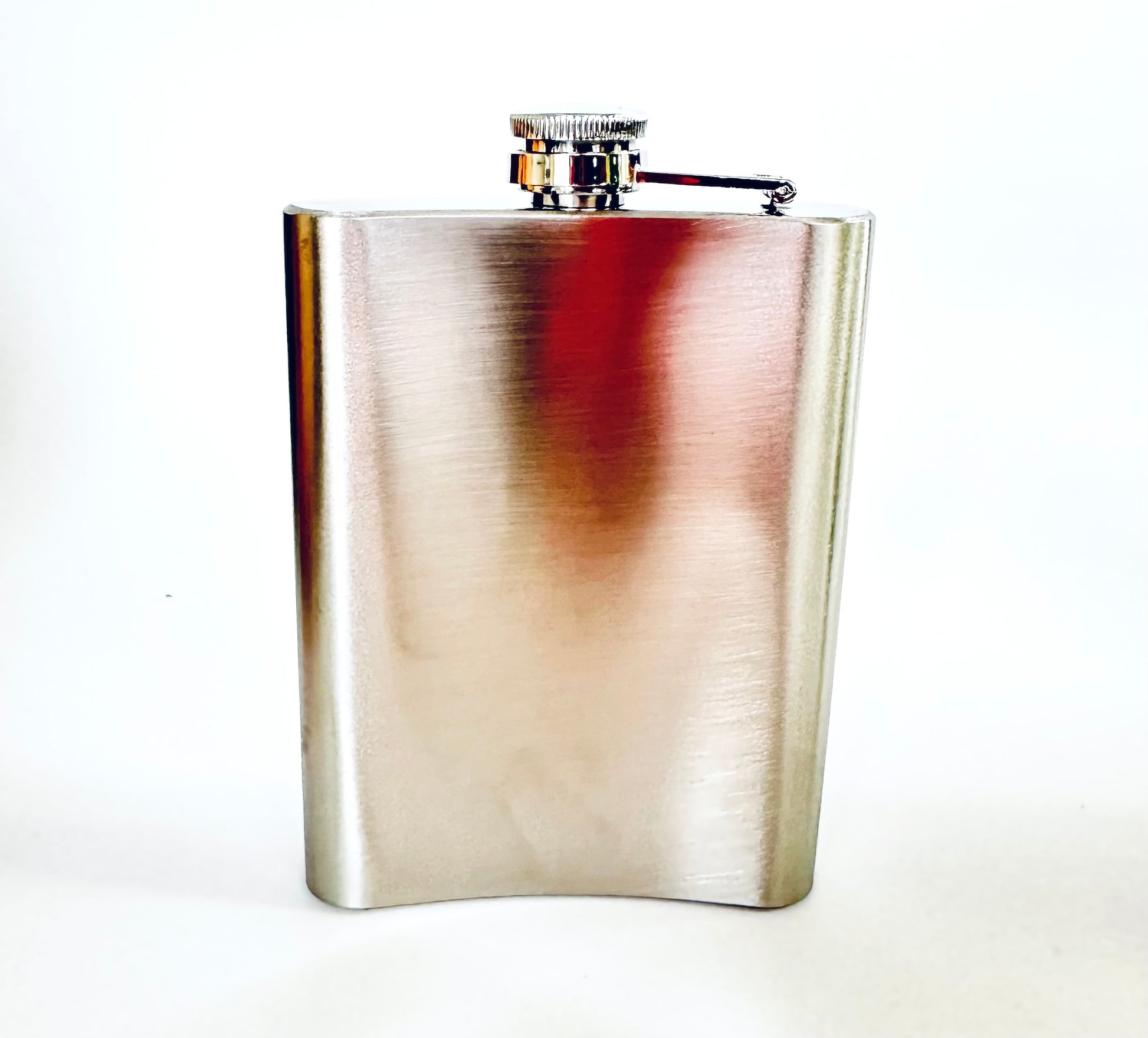 This is a Bored Baddies 8oz stainless steel hip flask that comes with funnel. Perfect for travel, concerts, camping, etc.