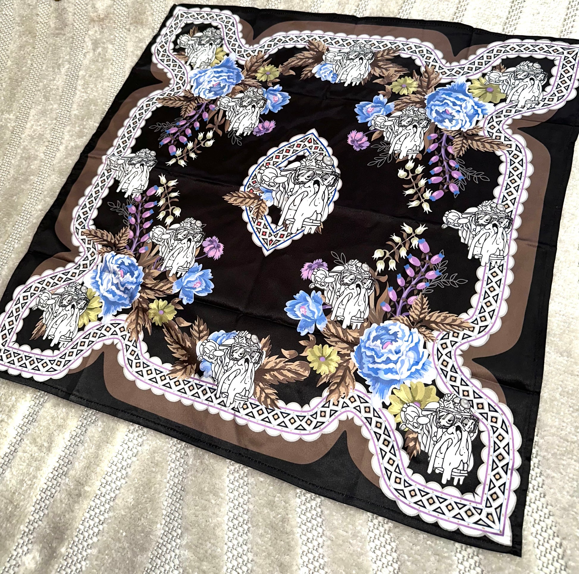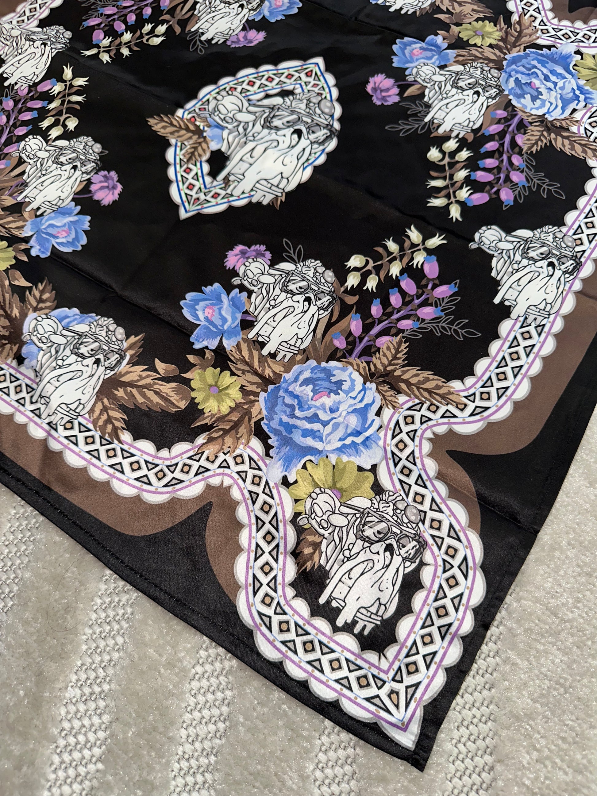 Bored Baddies Black Blue Floral Scarf