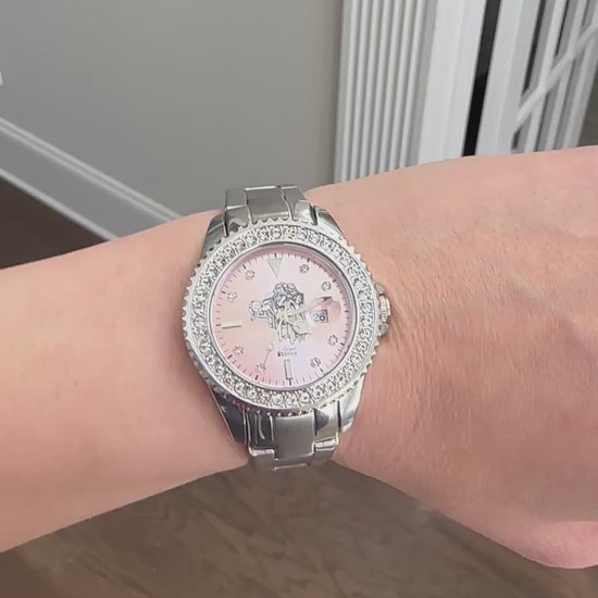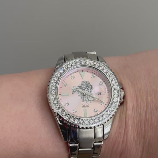 Bored Baddies CZ Bezel Silver Pink Stainless Steel Womens Watch