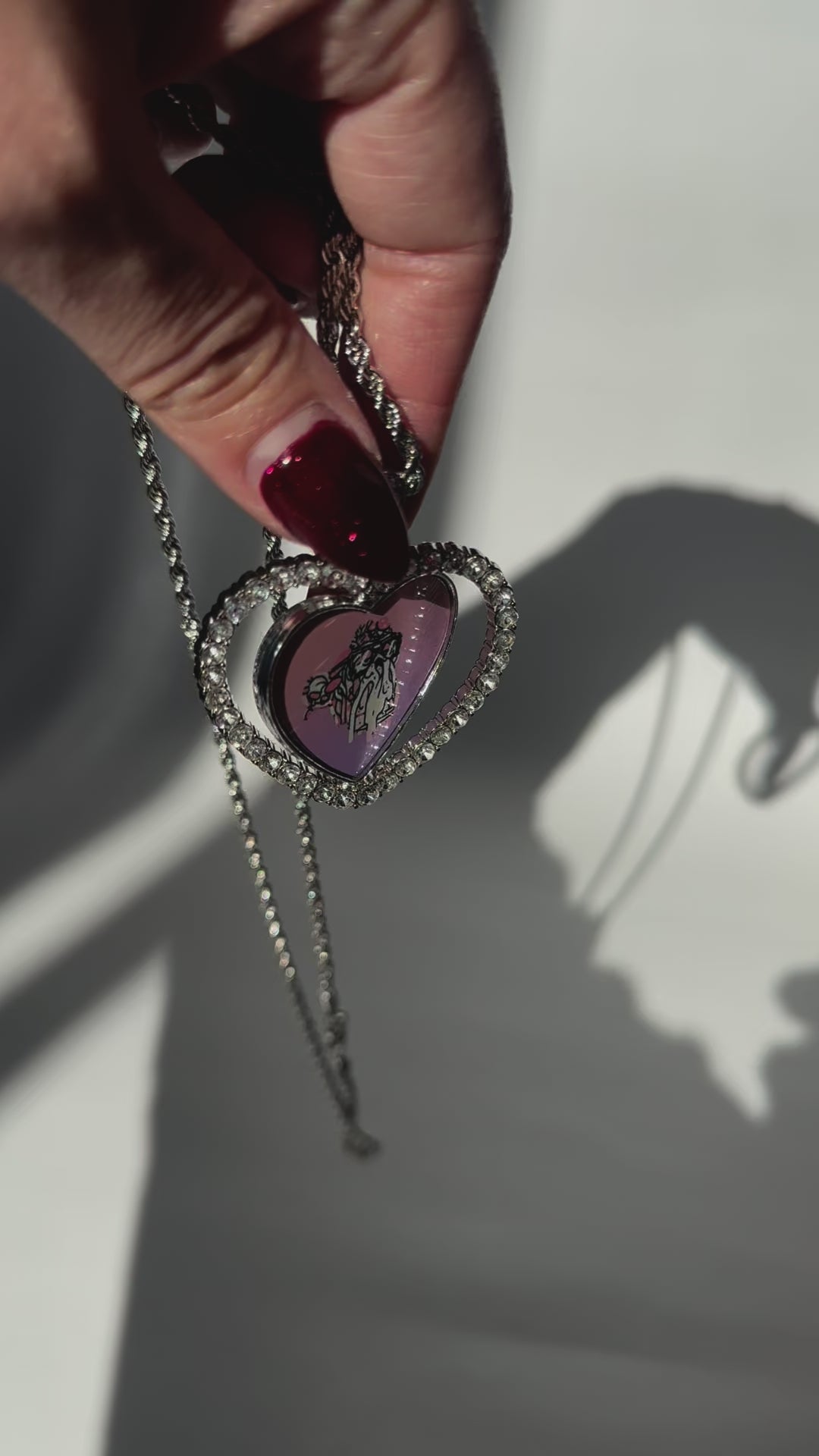 24” Gradient Heart Pink Purple Pendant w/ Necklace