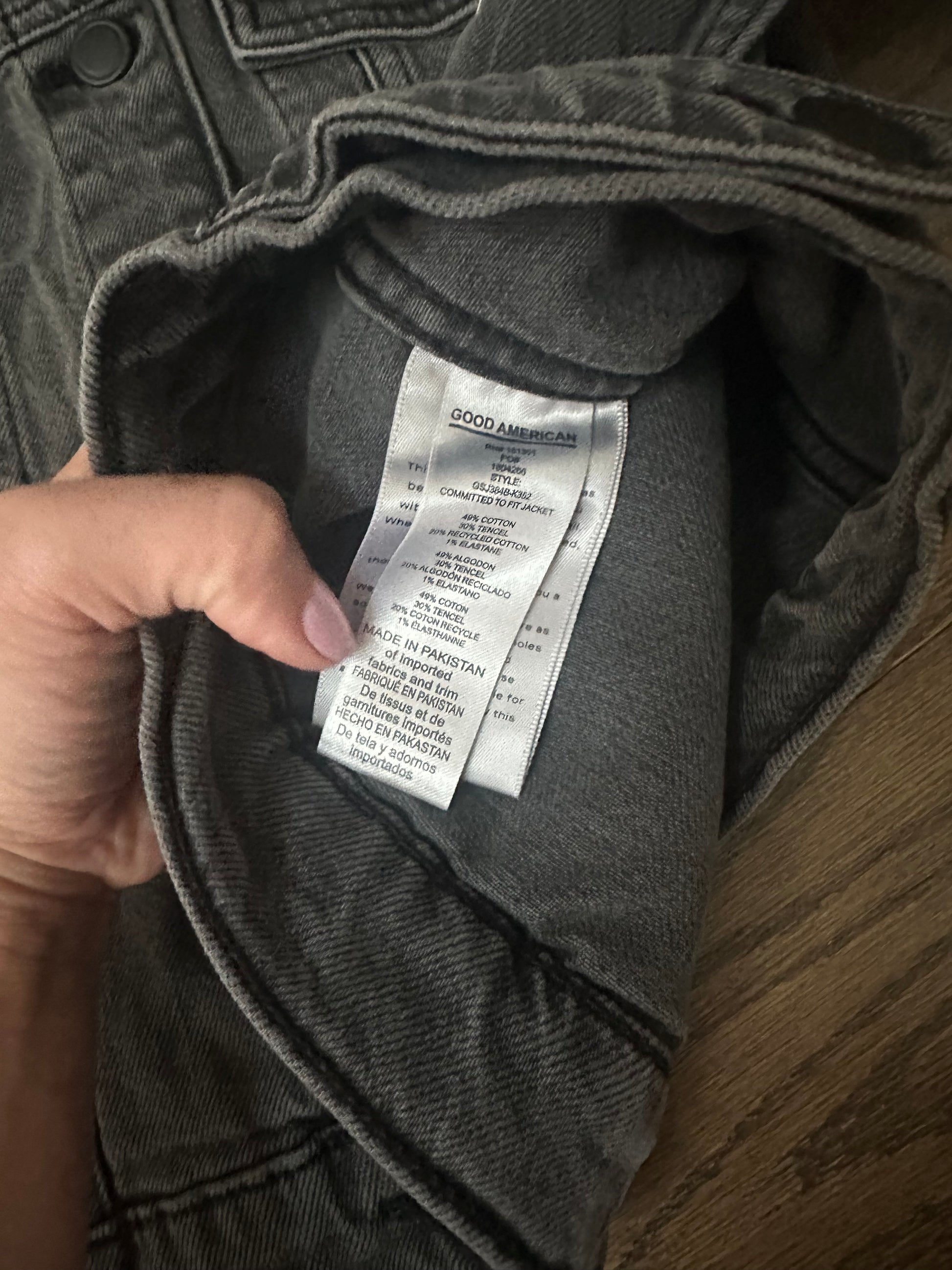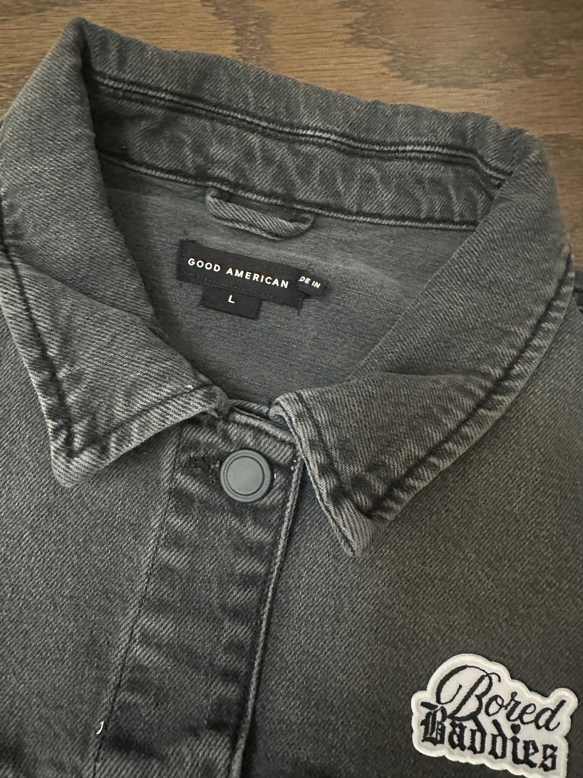 This is a custom Bored Baddies adorned GOOD AMERiCAN Classic Black Denim Jacket, featuring the signature brand and logo. ***Only 3 available***. The jacket is brand new with original tags and has a comfortable stretch to it!